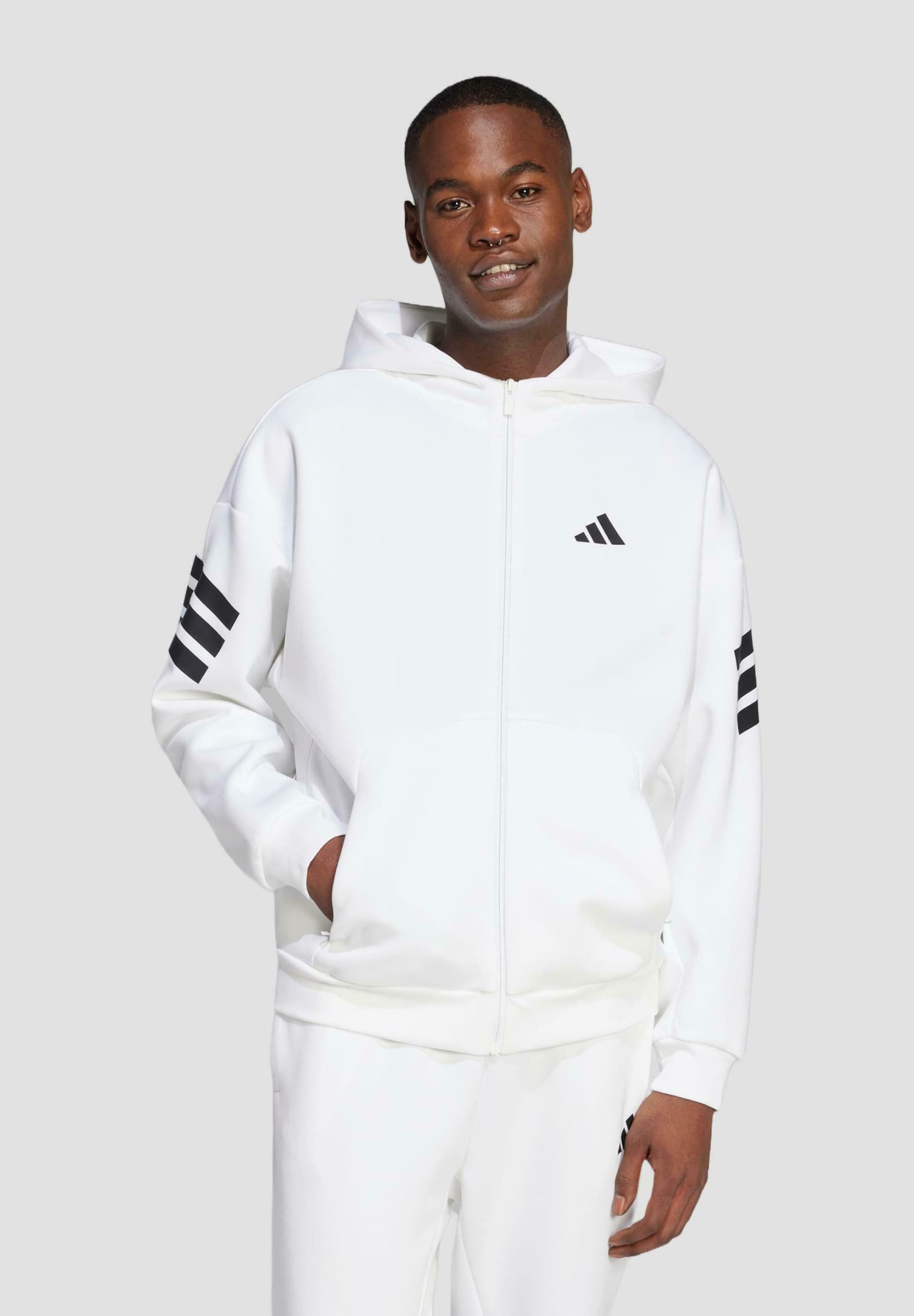 felpa adidas bianca strisce nere