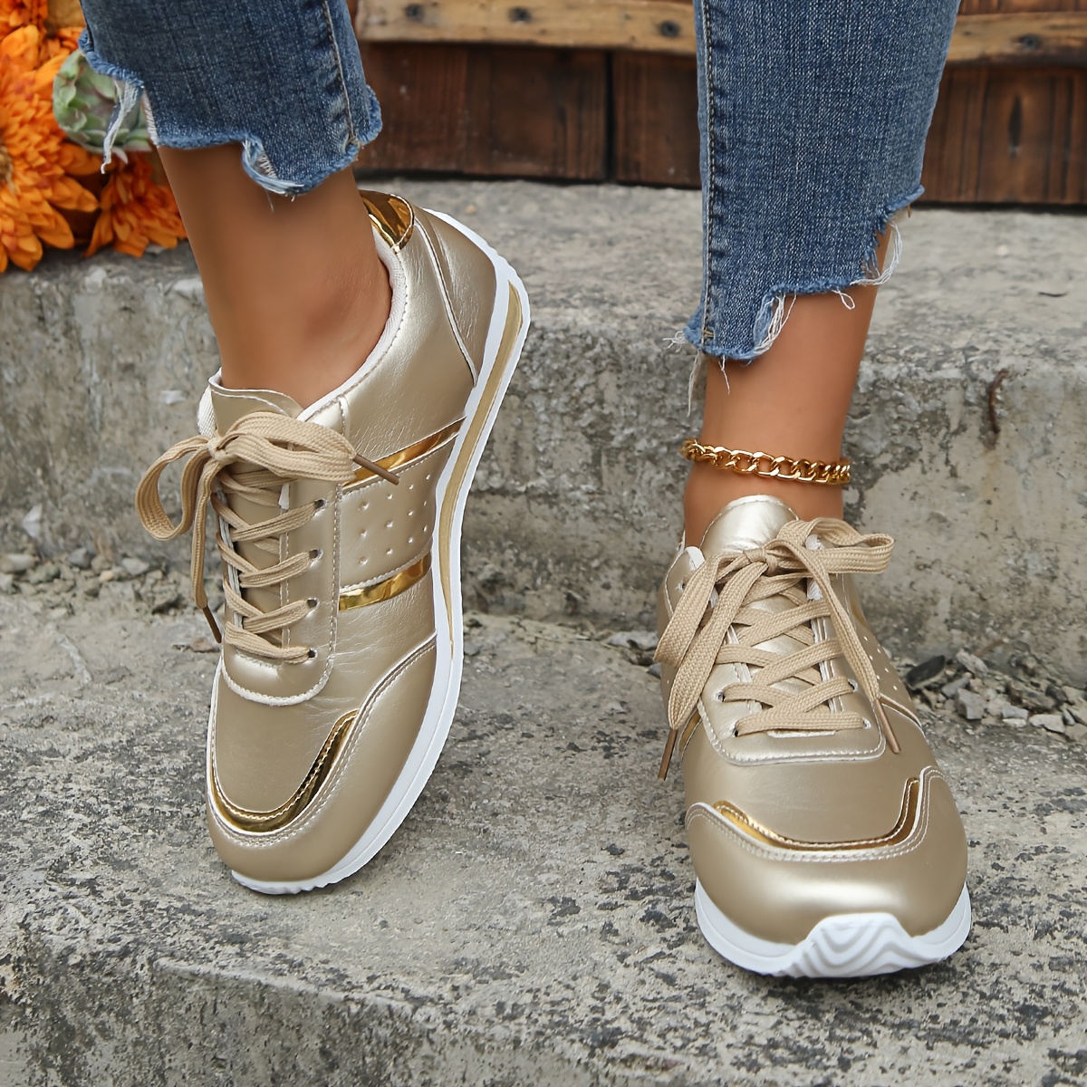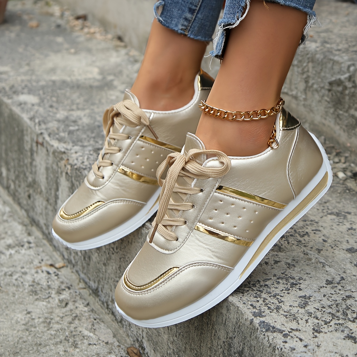scarpe da ginnastica color oro