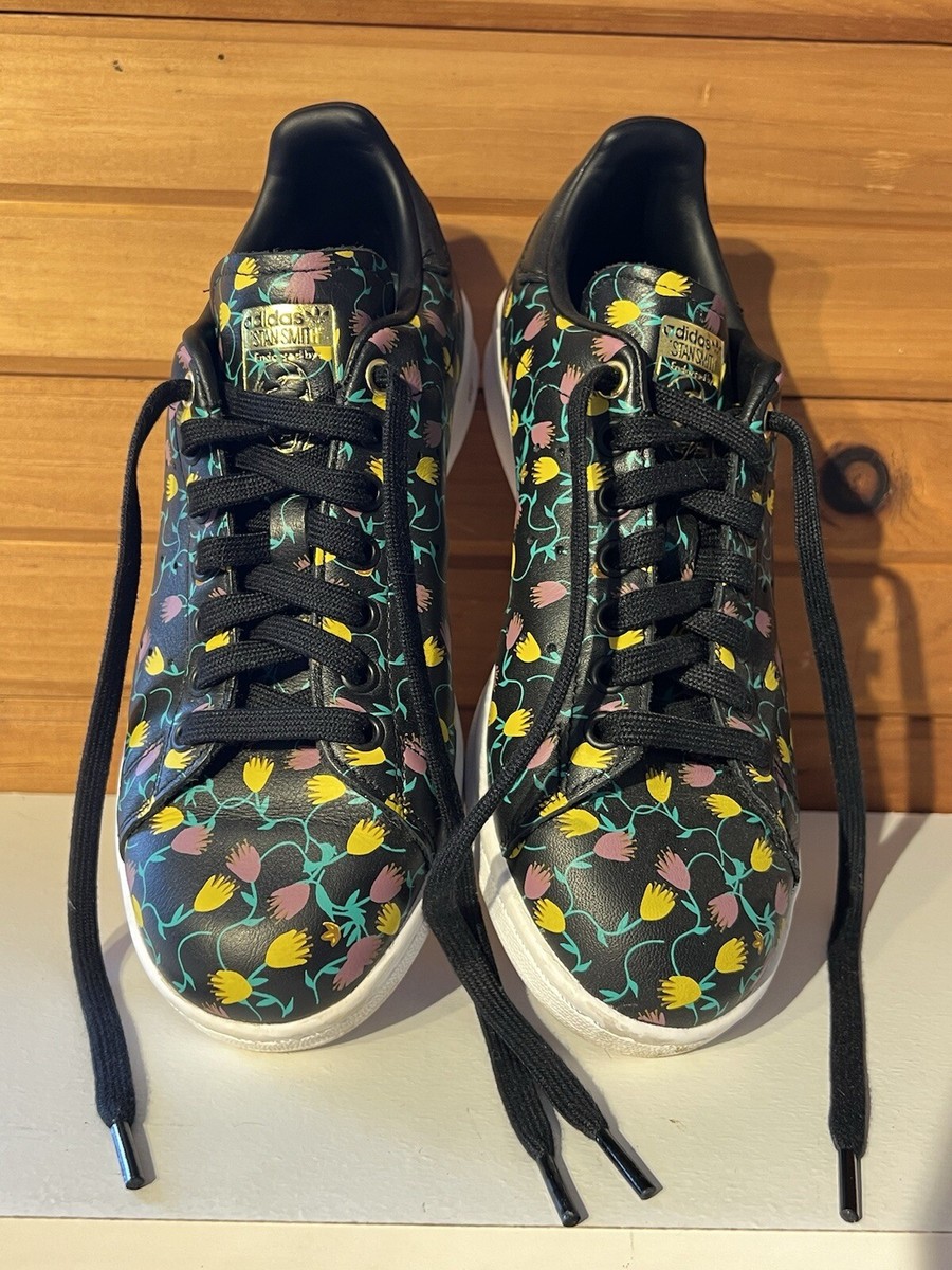 stan smith black flowers