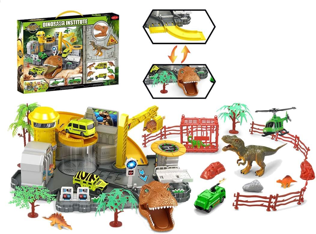 garage voiture avec dinosaure