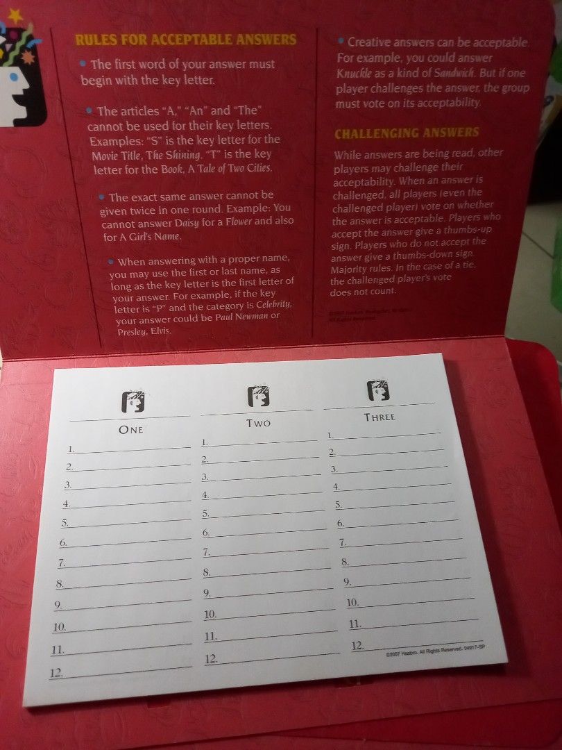 hasbro scattergories board jeu