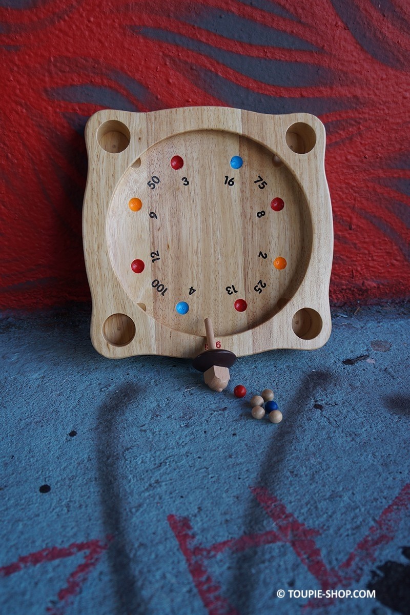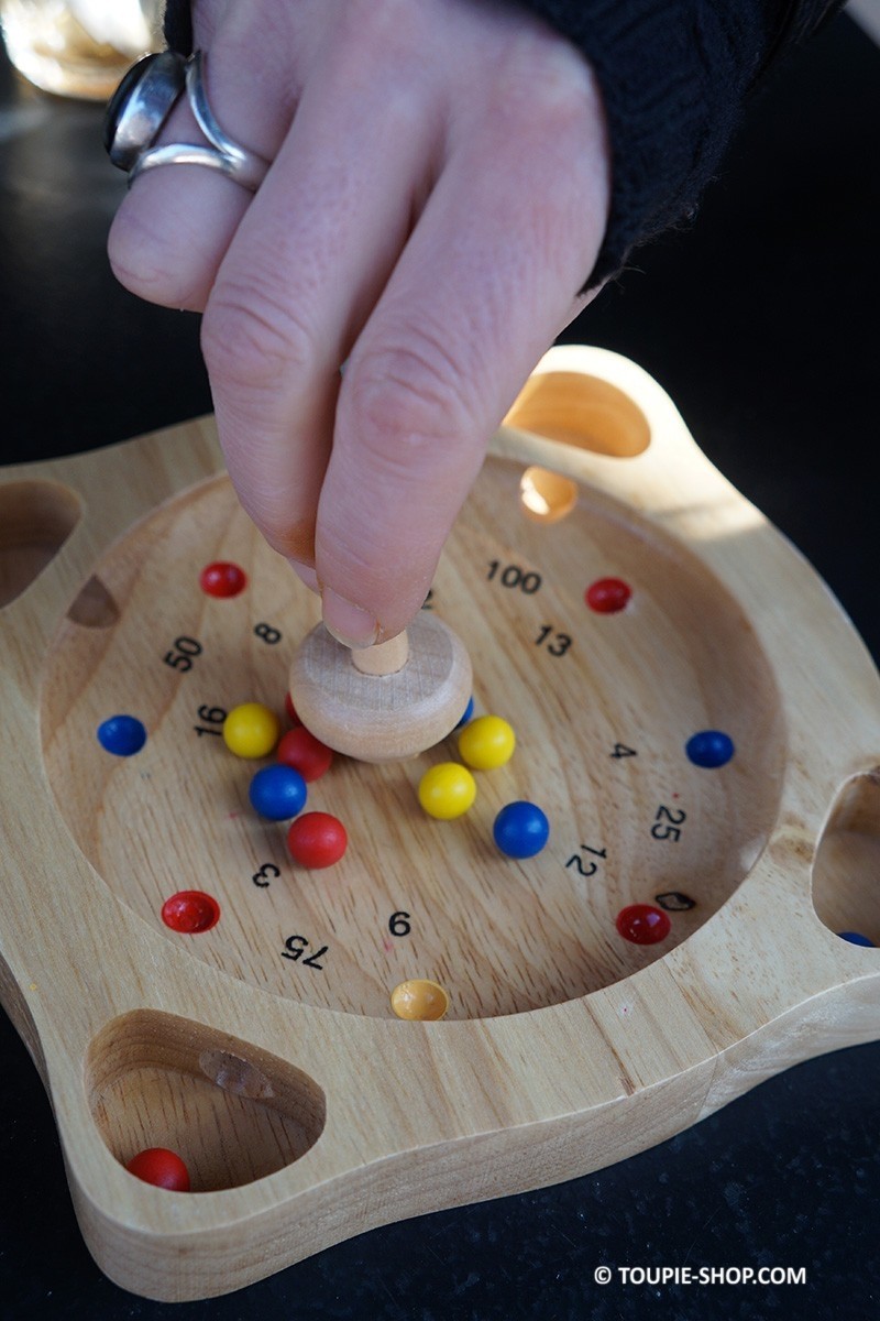 jeu en bois avec toupie et billes