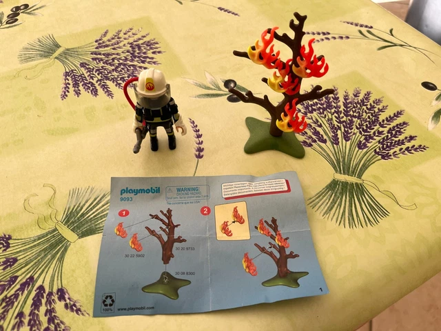 playmobil pompier avec arbre en feu