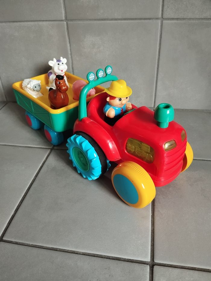 tracteur avec remorque et animaux