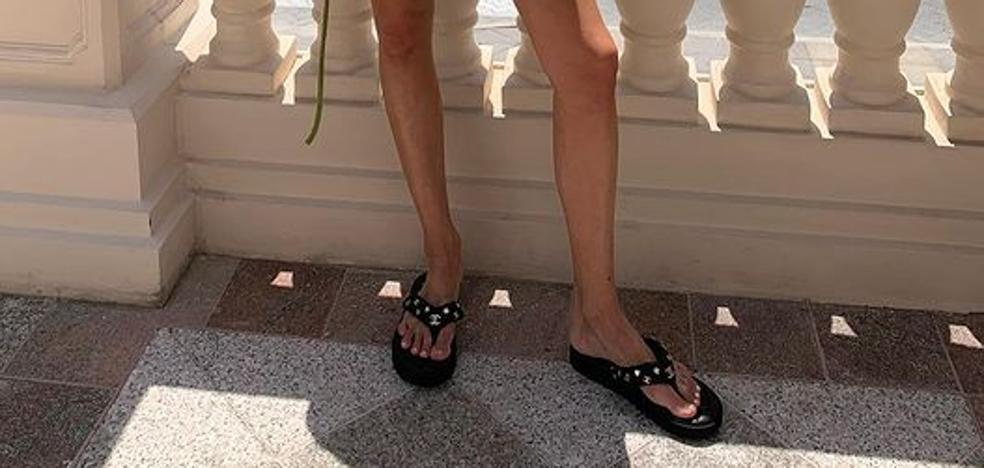 chanclas dedo tela mujer
