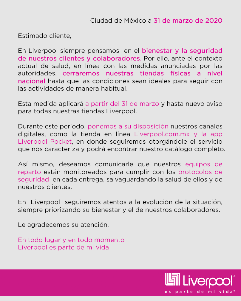 cierre de tiendas liverpool