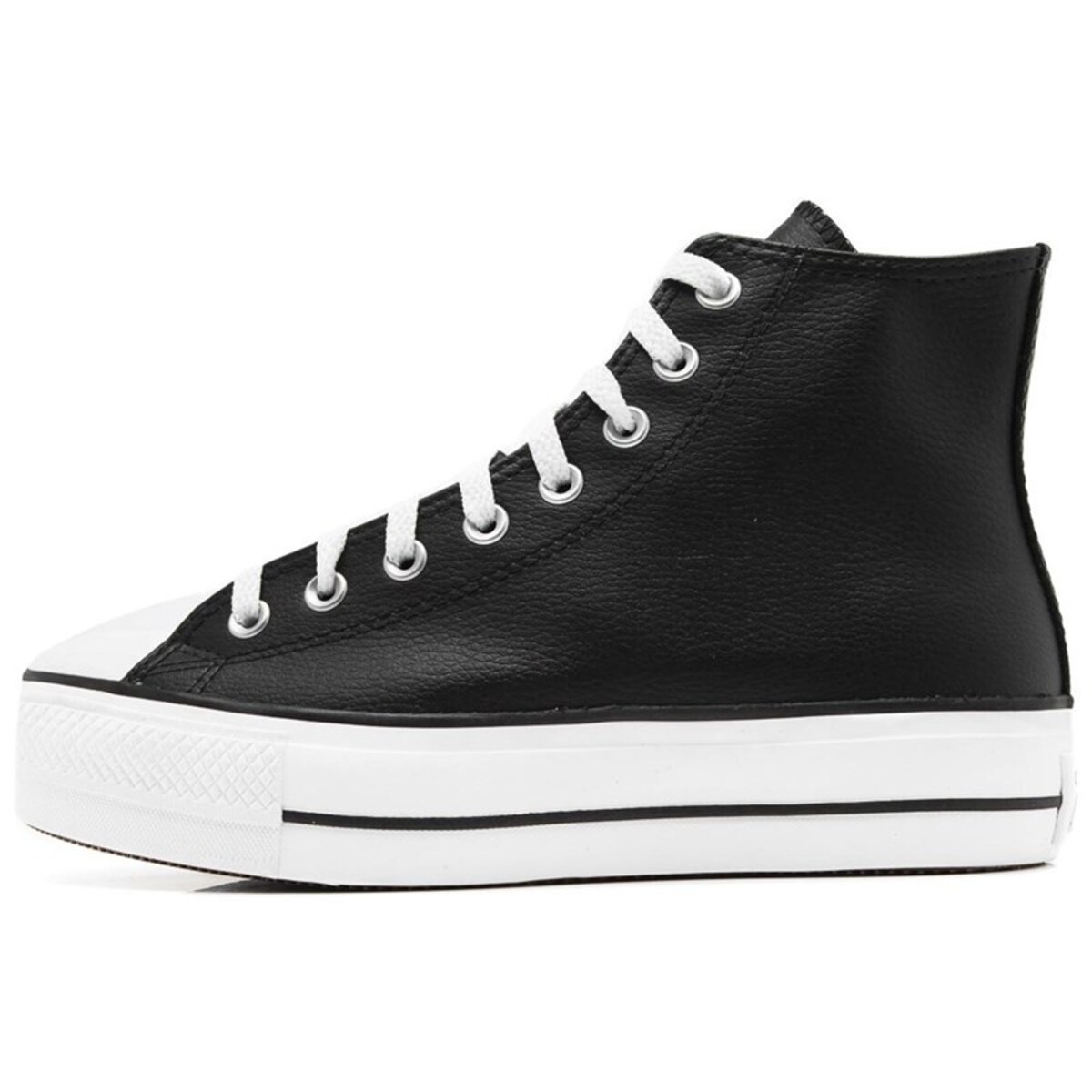 converse negra plataforma cuero