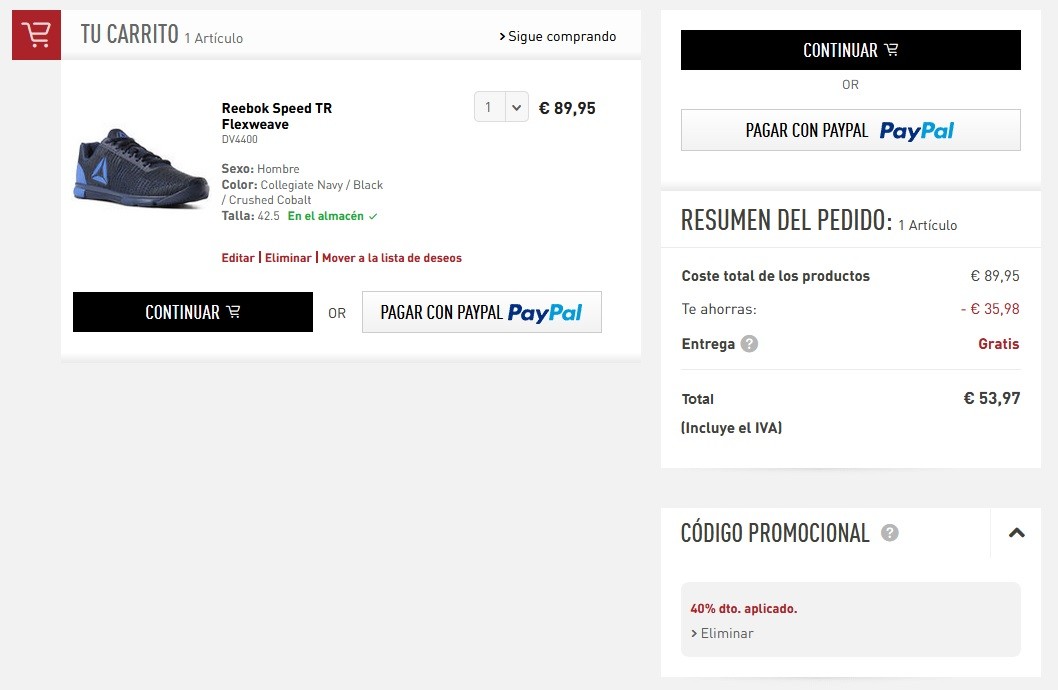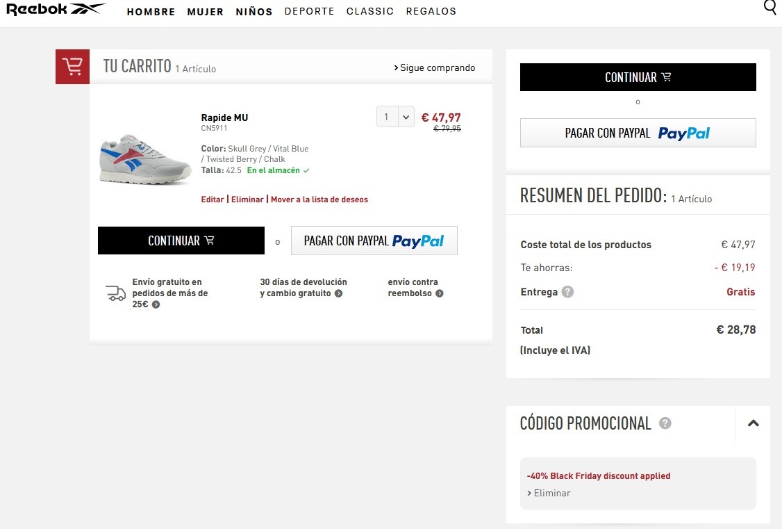cupon de descuento reebok