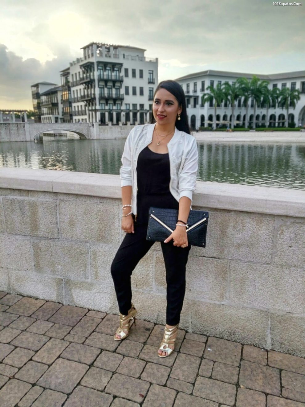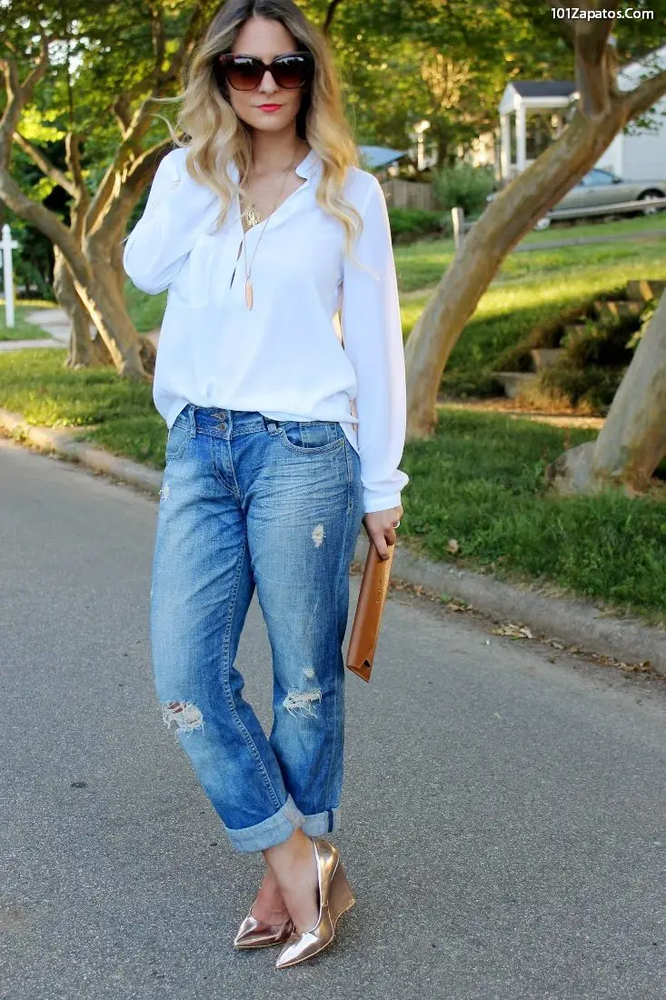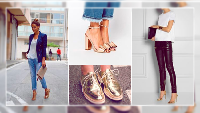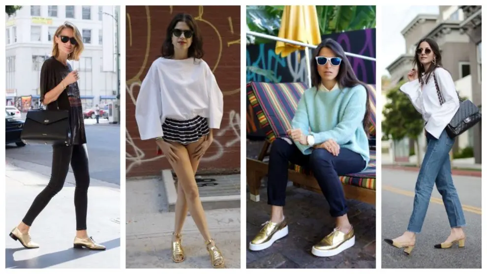 outfit con zapatos dorados