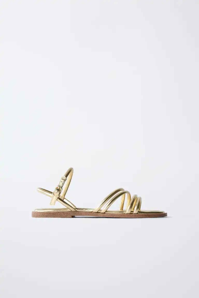 sandalias planas doradas zara