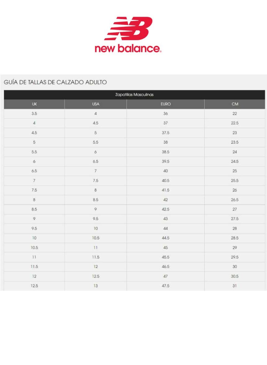 tabla tallas zapatillas new balance
