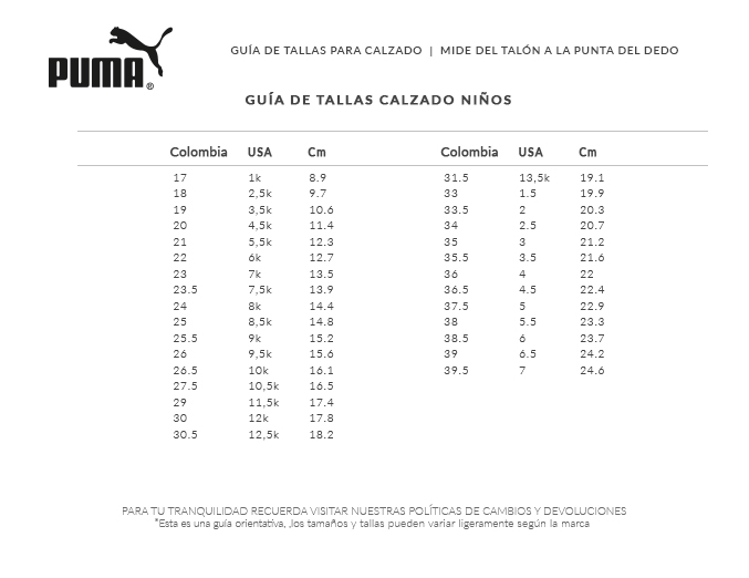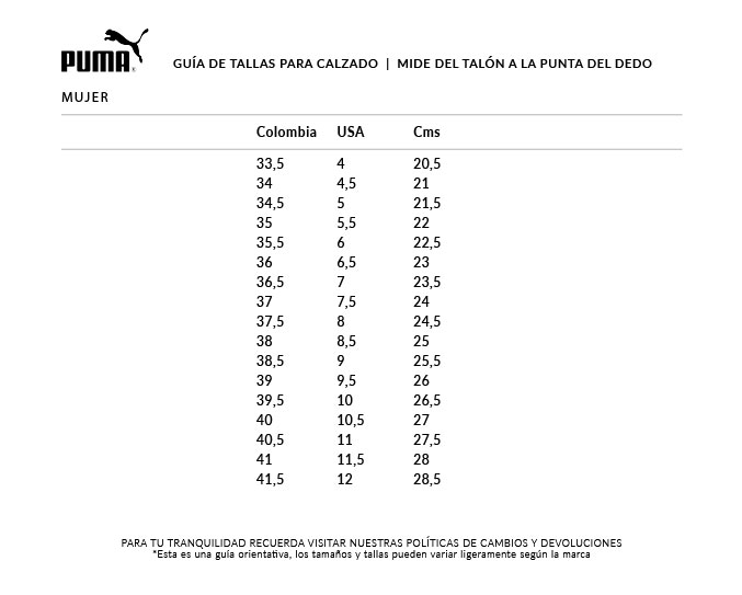 tallas puma calzado