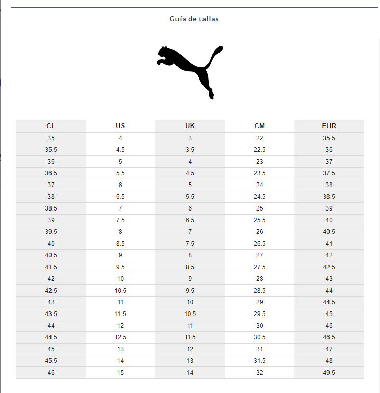 tallas zapatos puma