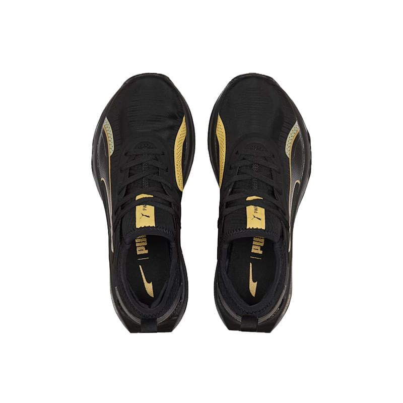 tenis puma para mujer negro con dorado