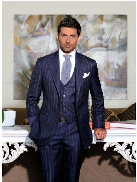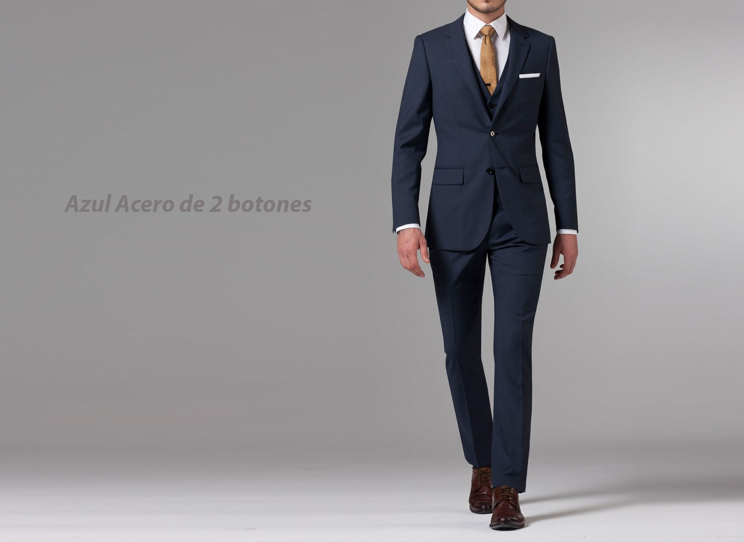 terno azul con zapatos marrones