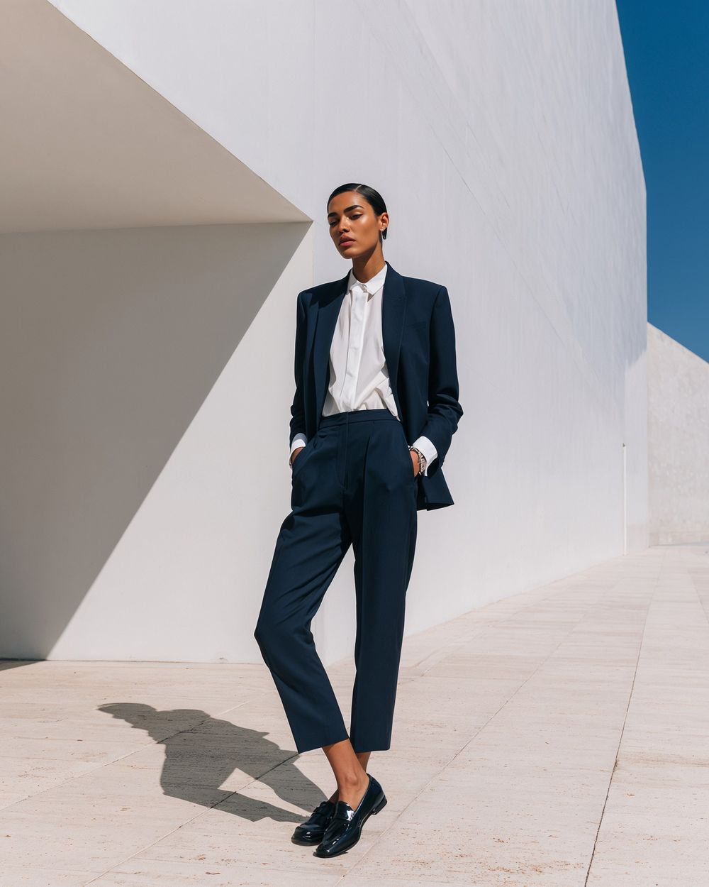 traje azul marino zapatos negro