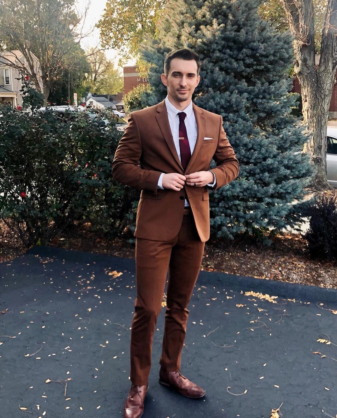 traje negro y zapatos cafes