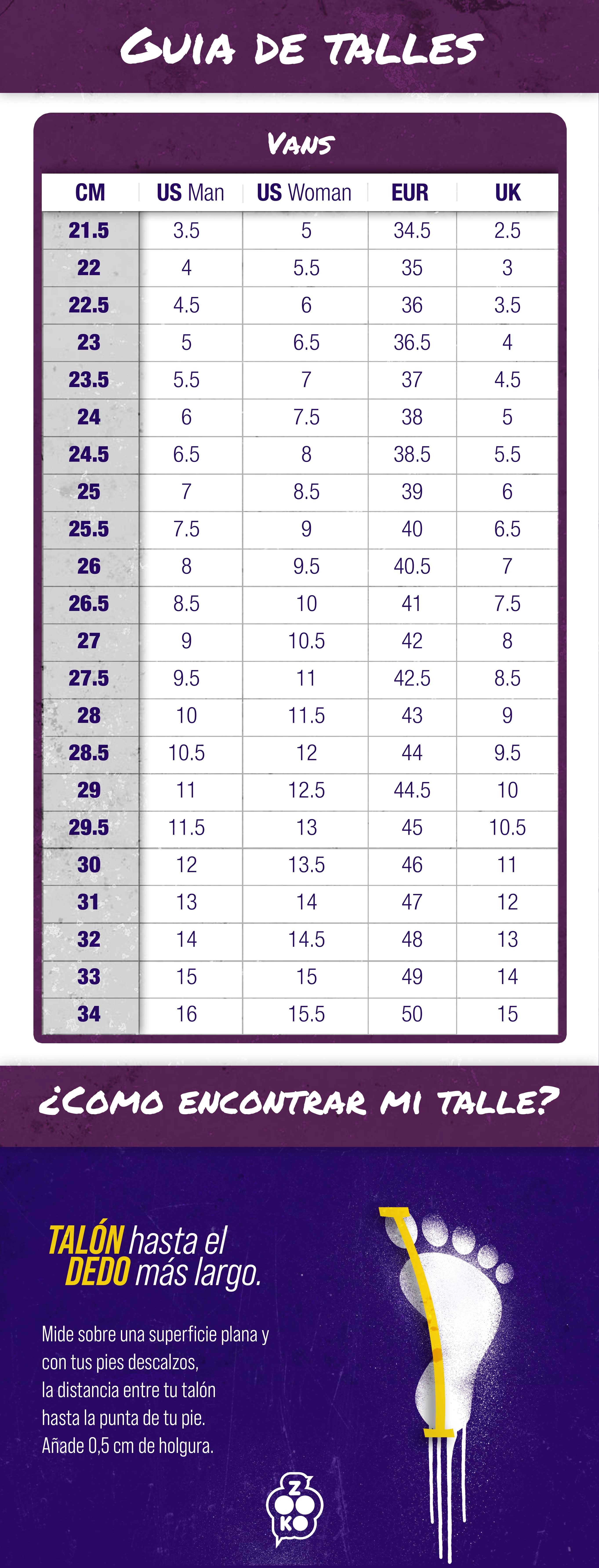vans tallas