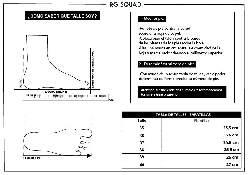 zapatillas fila tabla de talles