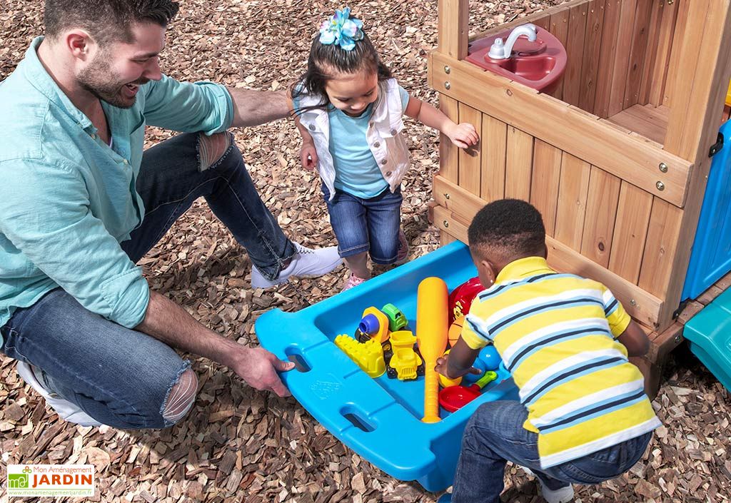 aire de jeux en bois avec cabane