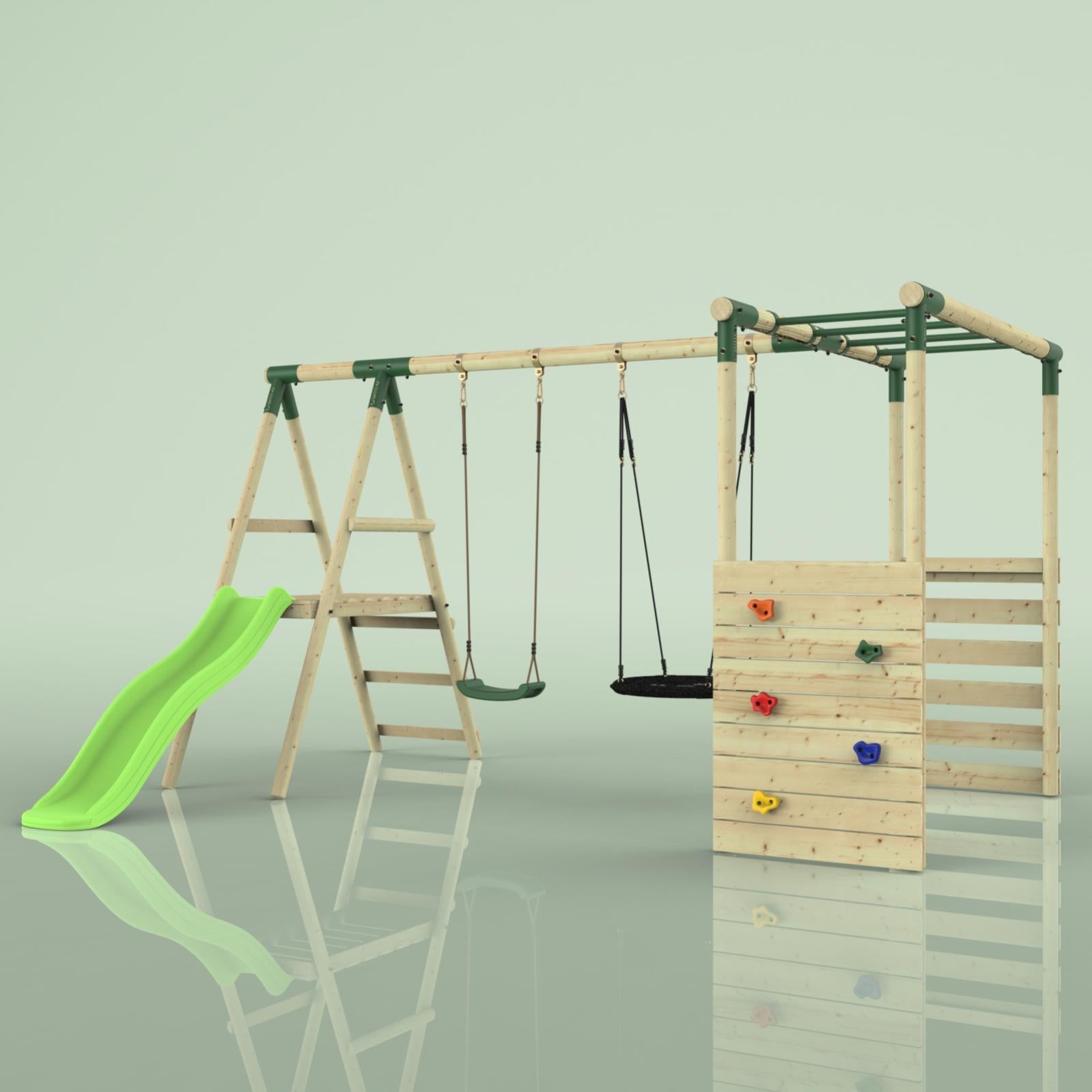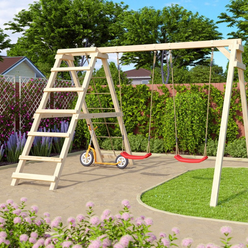 balancoire avec mur escalade