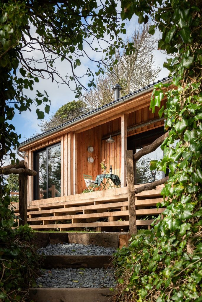 cabane en bois avec portique