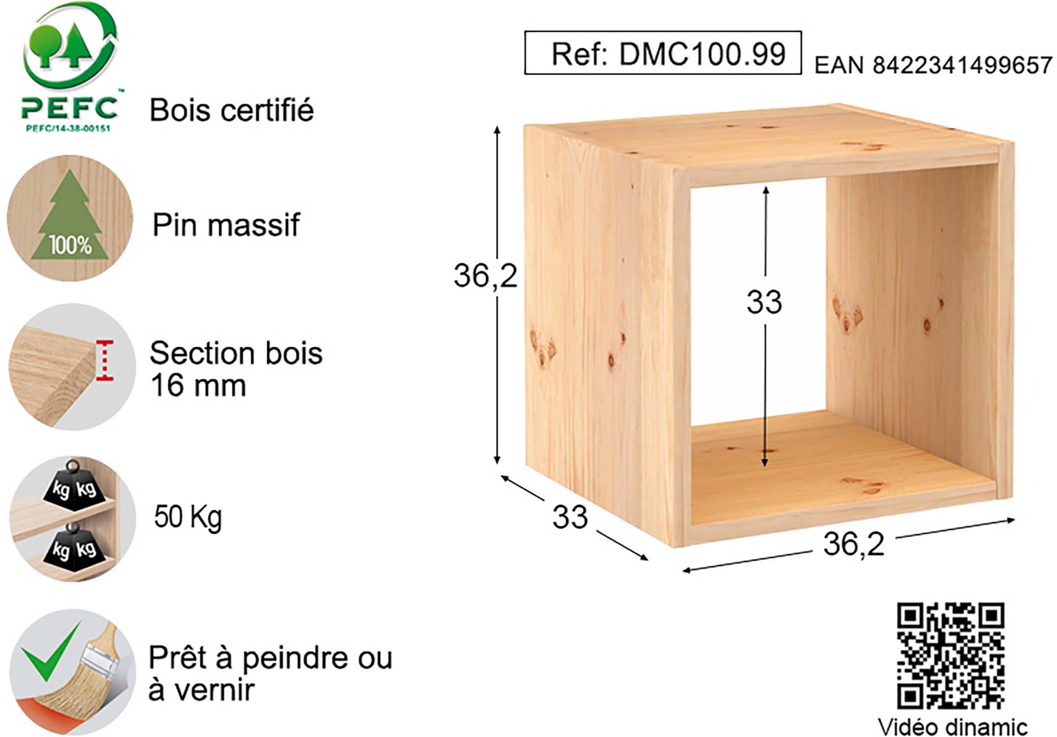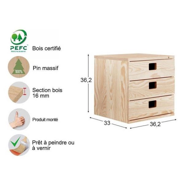cube rangement pin massif