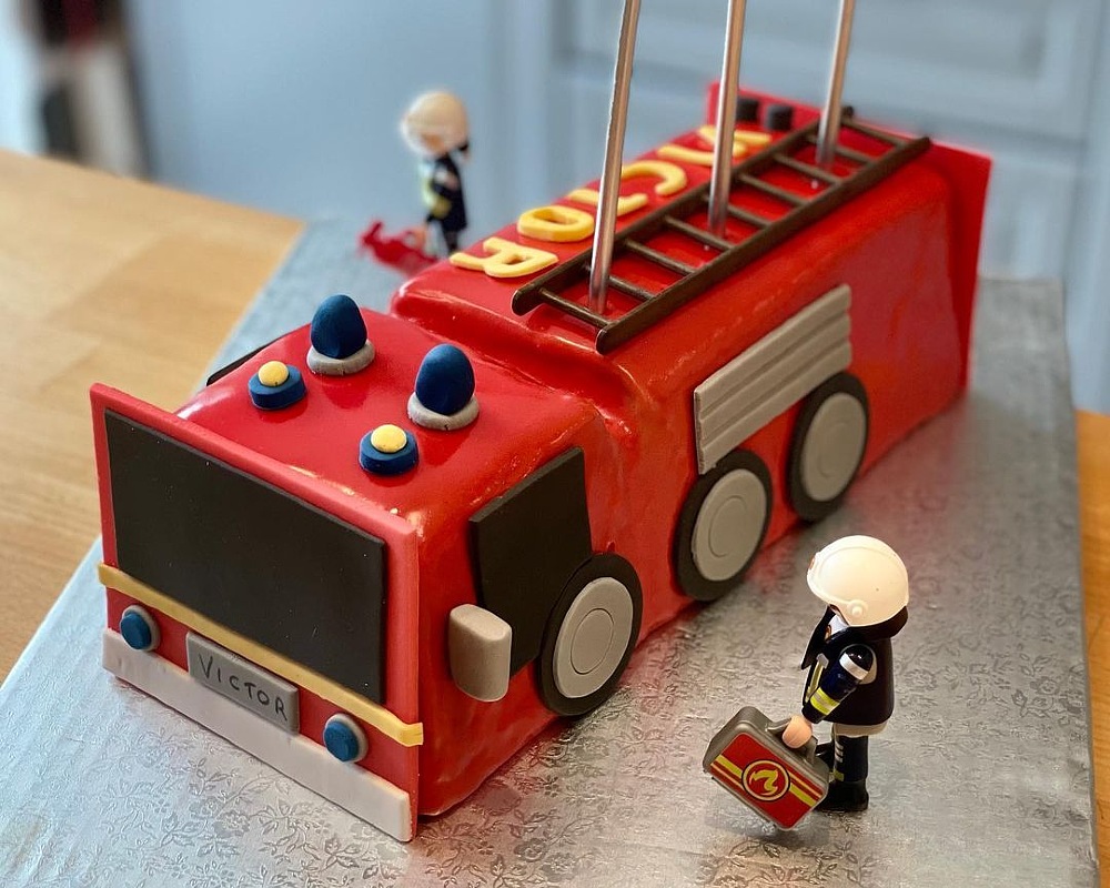 gateau anniversaire camion de pompier