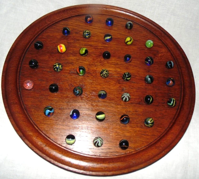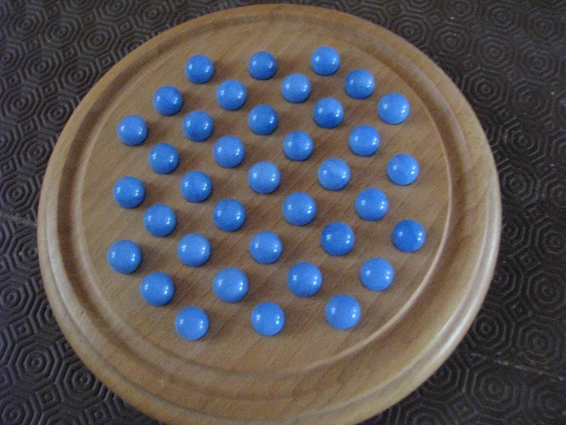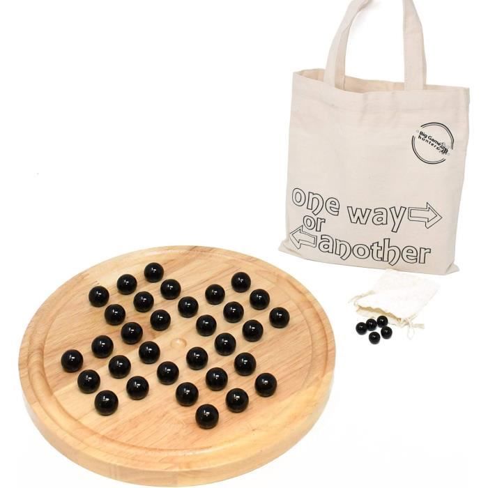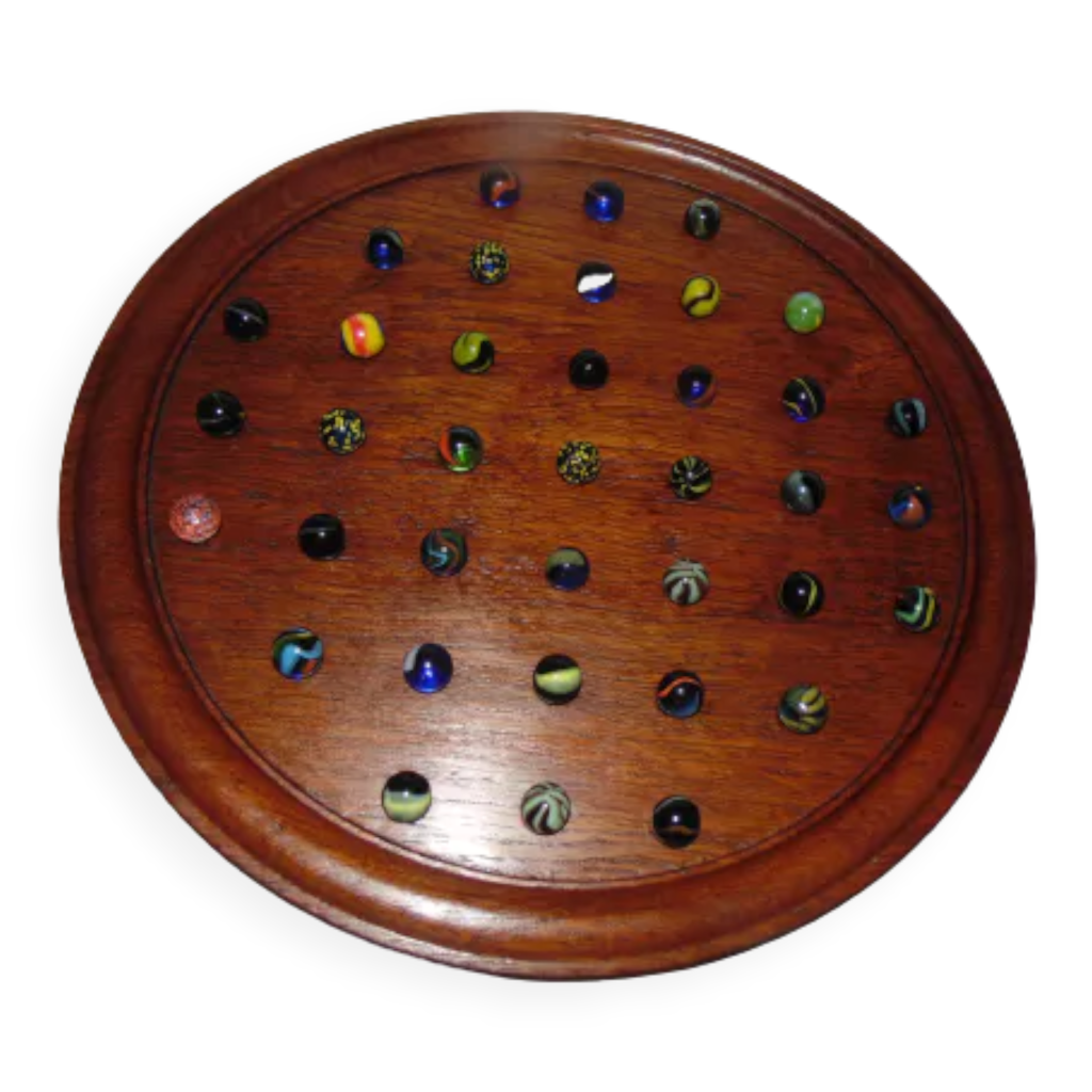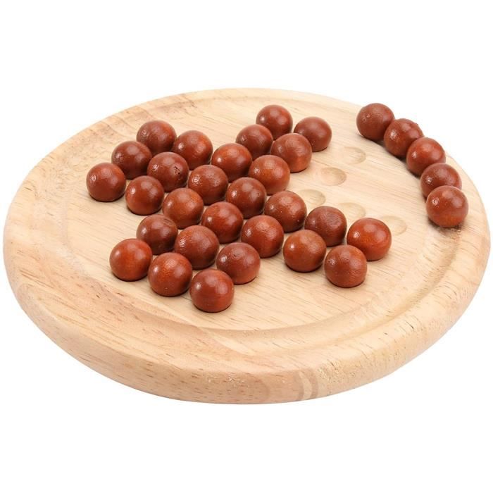 jeux solitaire en bois et billes en pierre