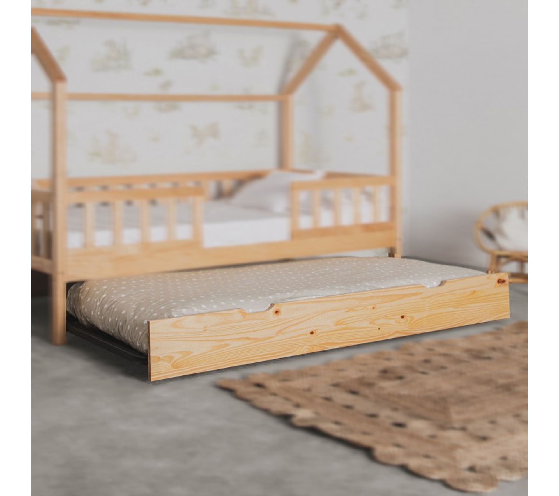 lit poupon sur pieds en bois