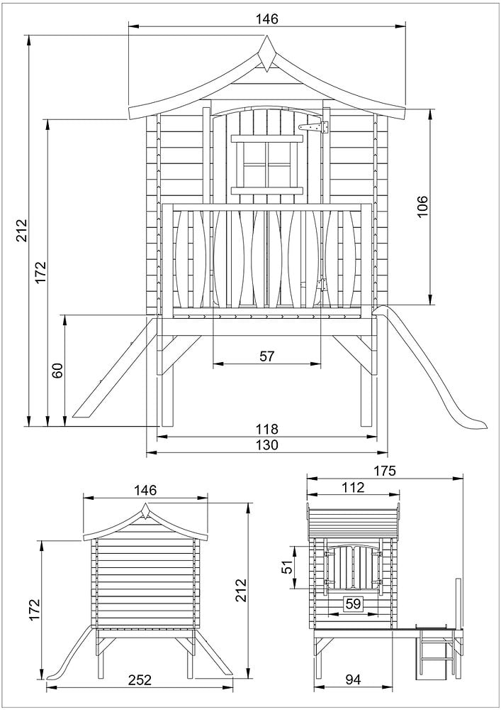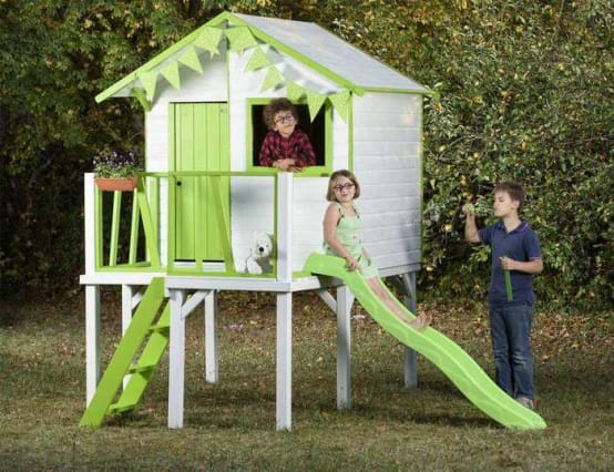 maison cottage sur pilotis avec toboggan