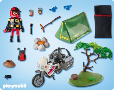 playmobil motard et tente de camping