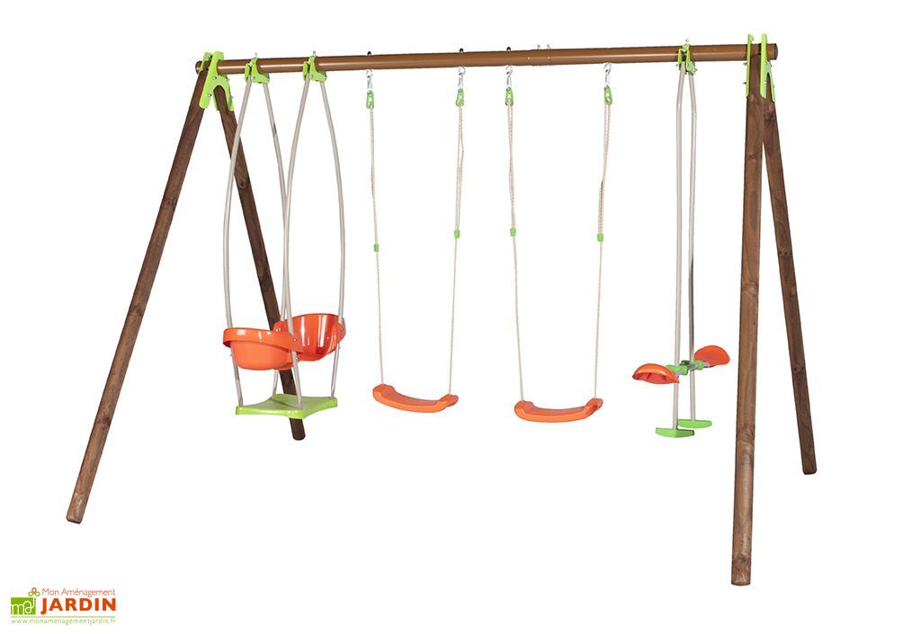 portique bois avec 3 balancoires
