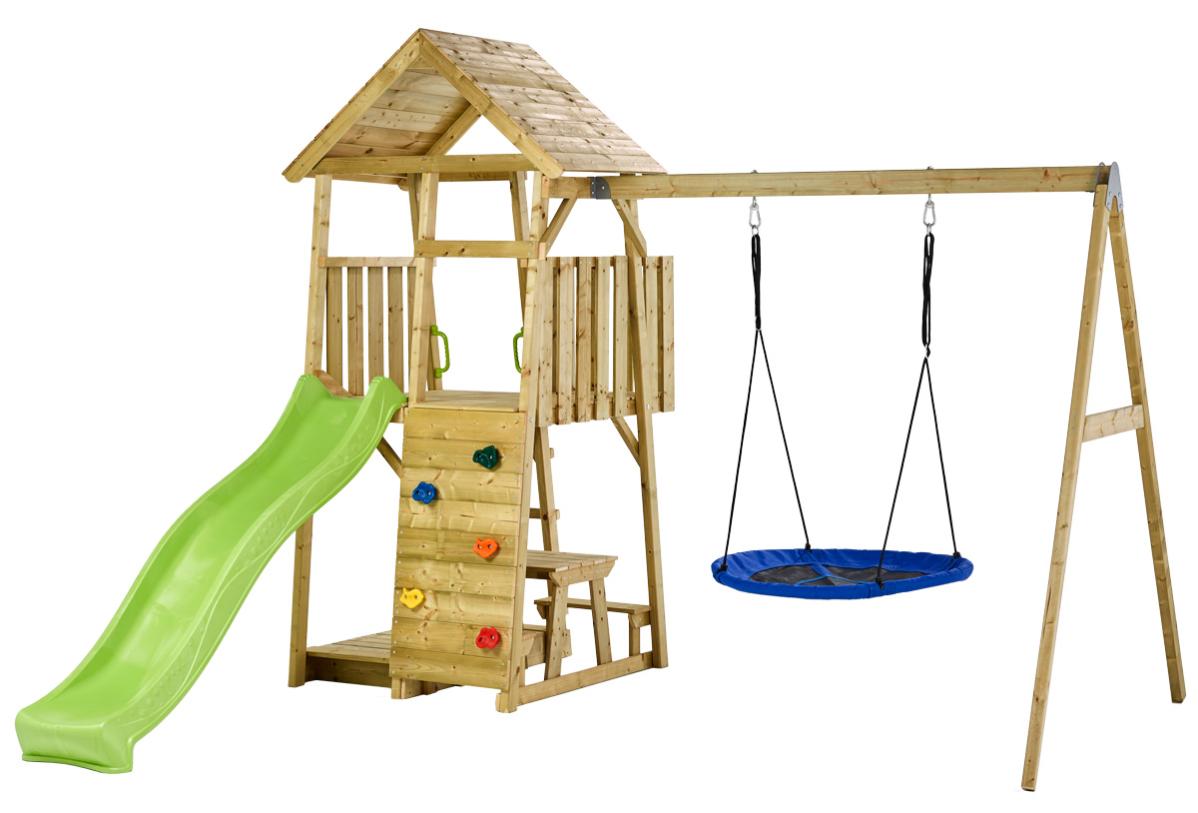 portique bois avec toboggan king jouet