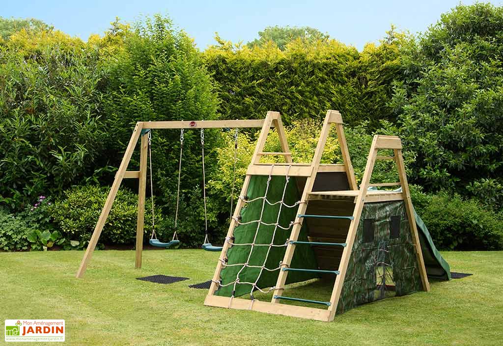portique toboggan bois