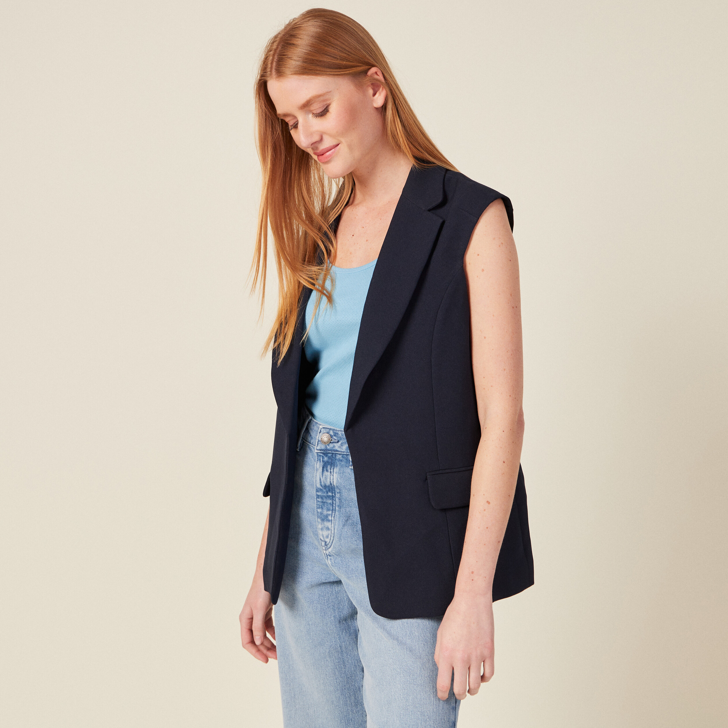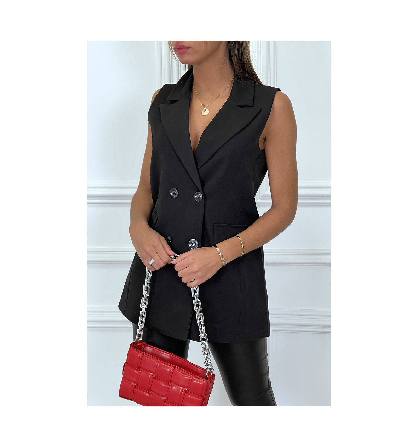 blazer court sans manche femme