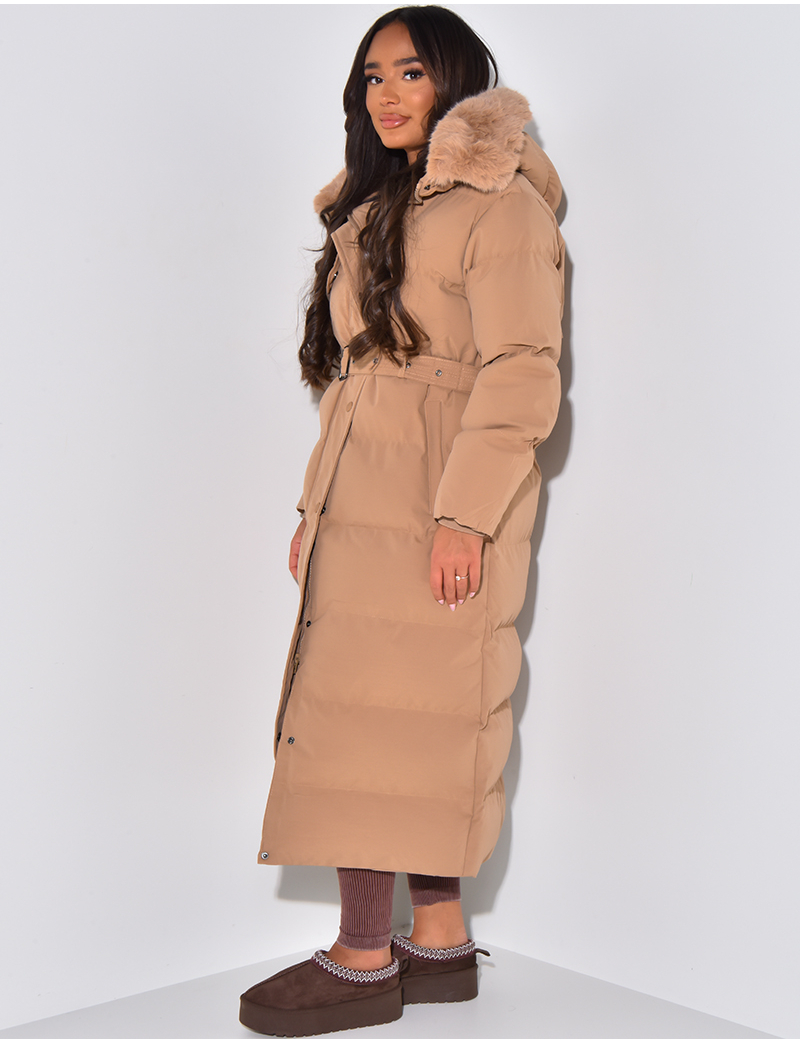 doudoune longue ceinture femme
