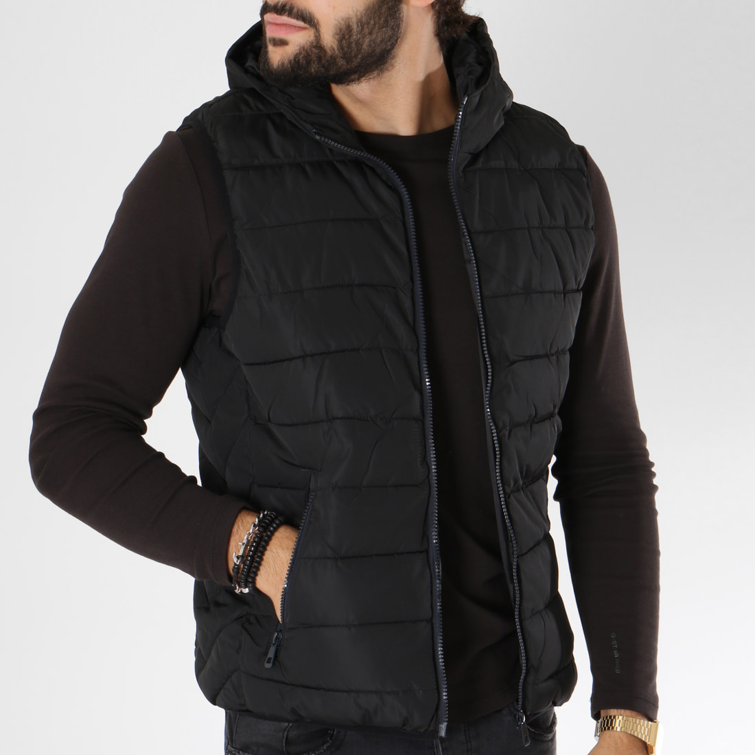 doudoune sans manche noir capuche