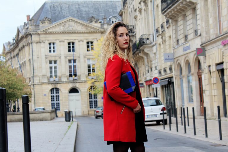 look avec manteau rouge
