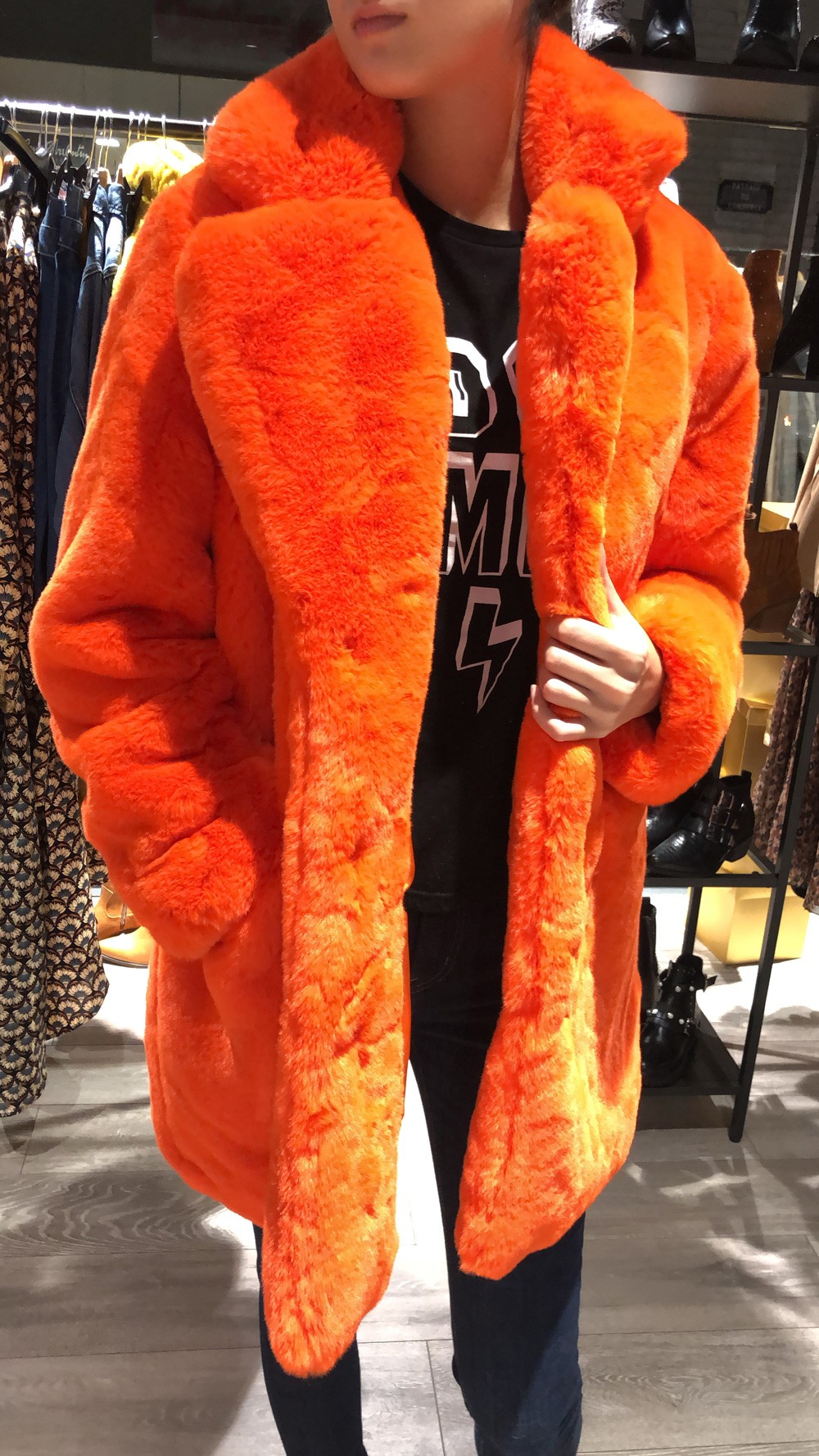 manteau fourrure orange