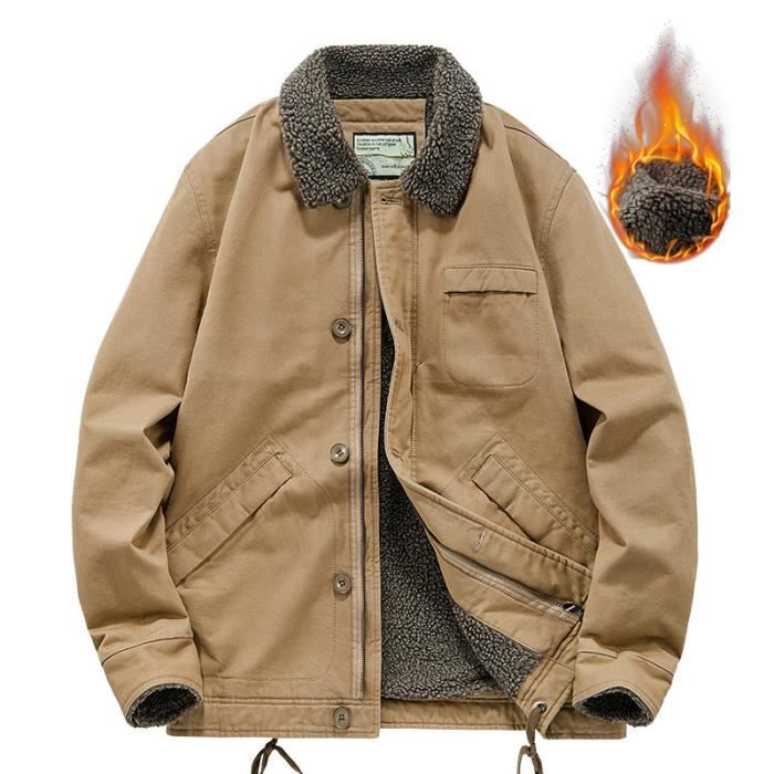 manteau homme hiver col revers doublure en ouatine polaire chaud