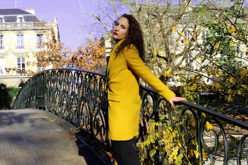 manteau jaune moutarde