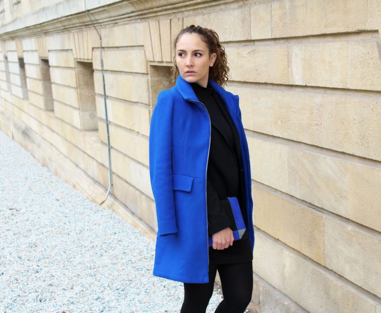 manteau long bleu electrique