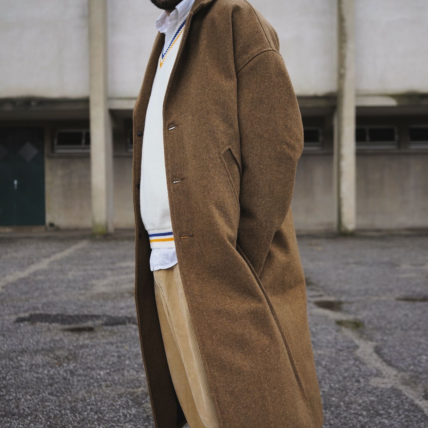 manteau long camel oversize