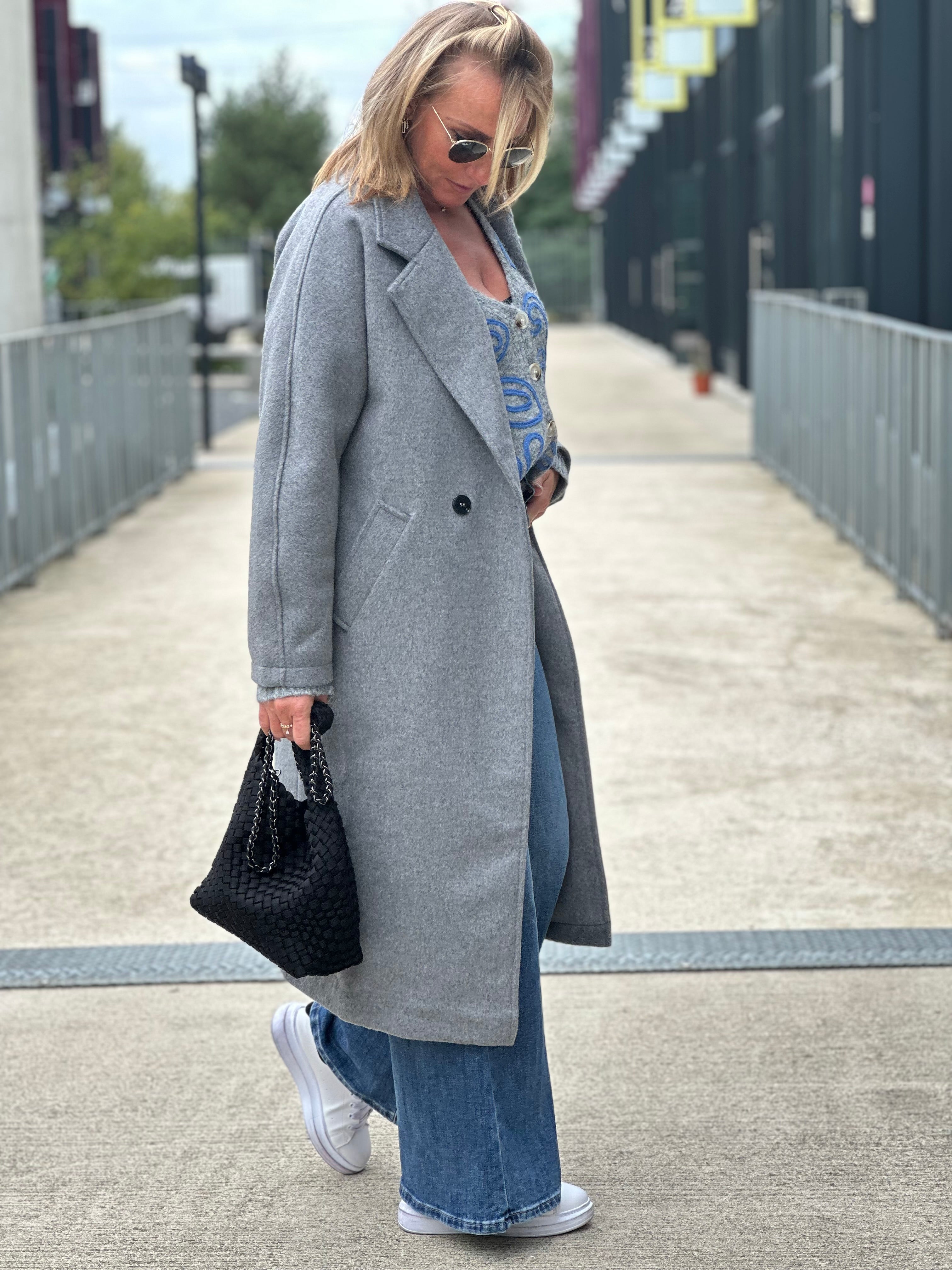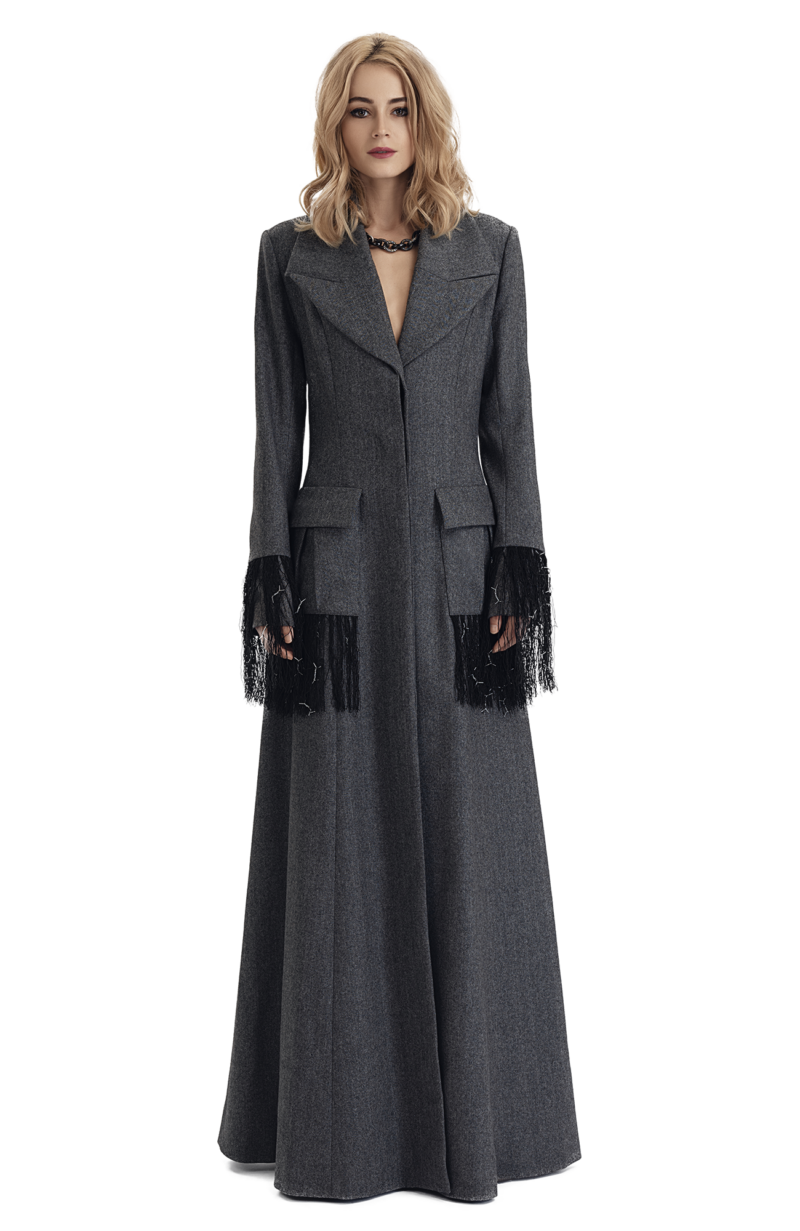manteau long gris laine