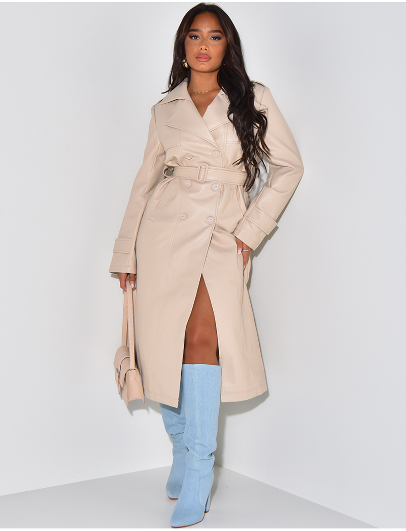 manteau long simili cuir homme
