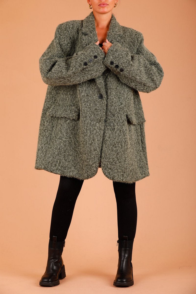 manteau mi long kaki femme