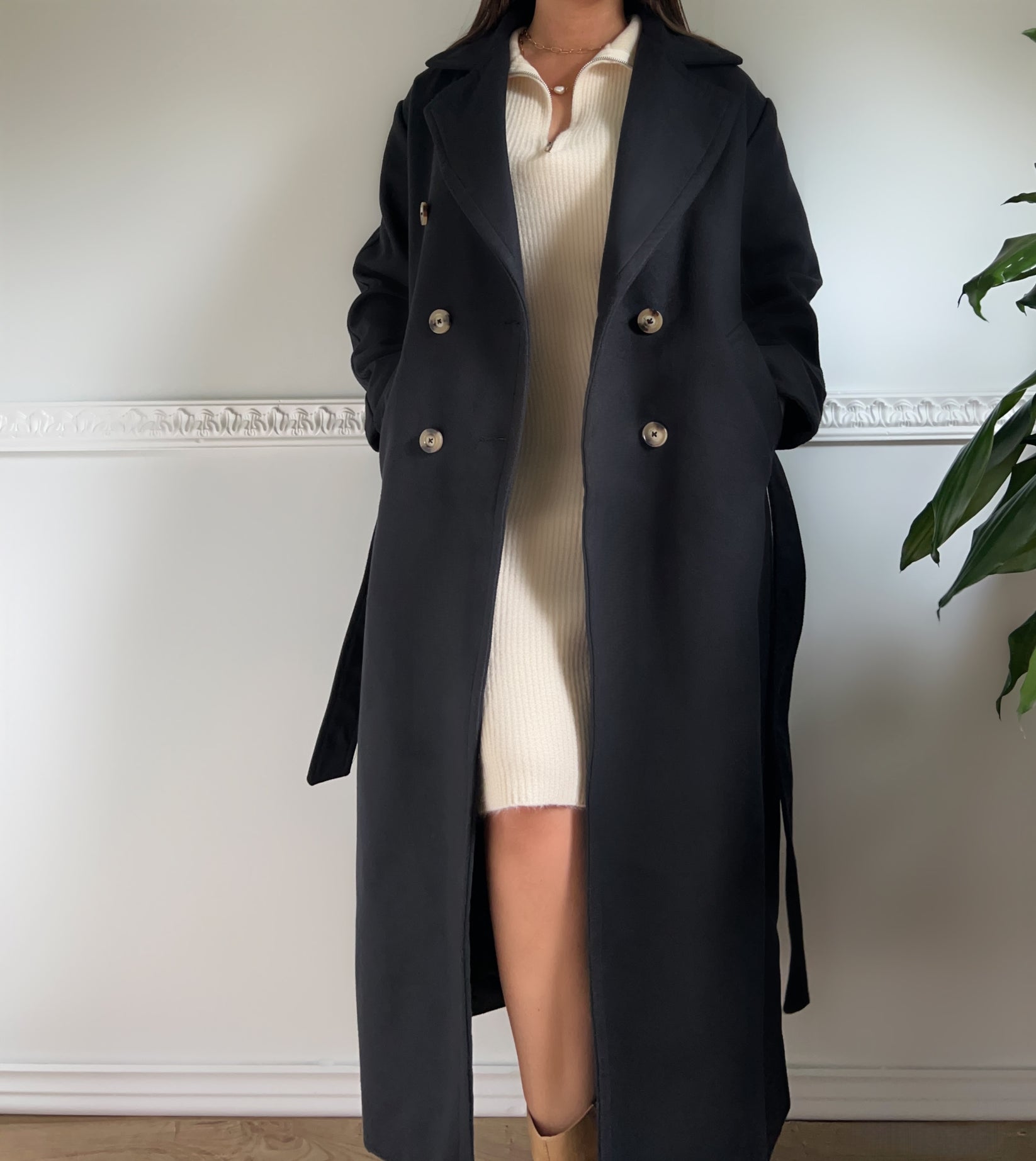 manteau noir ceinture long
