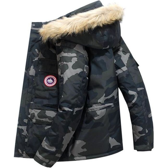 parka homme hiver chaud manteau fourrure capuche veste militaire blouson