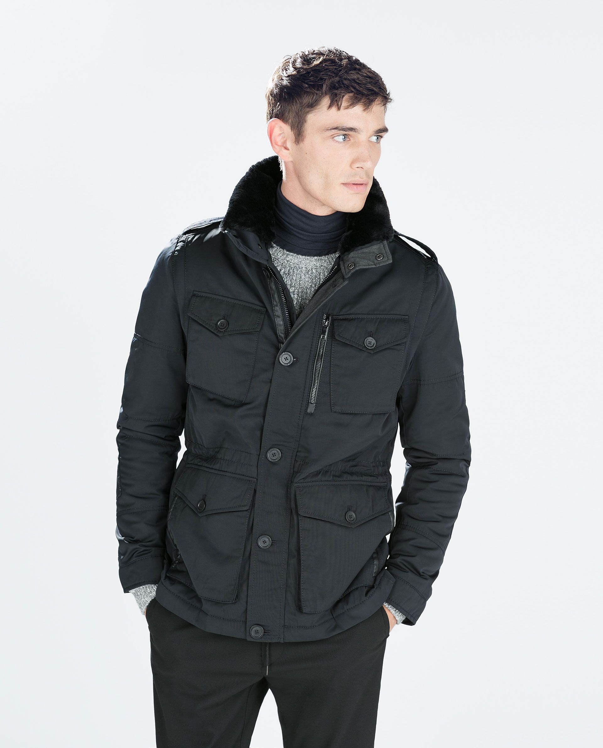 parka noir homme zara